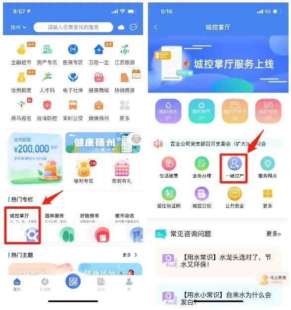 近日,扬州城控集团整合旗下长江水务、扬州中燃与扬州市民卡公司优质资源,打通关键性技术壁垒,开创性打造了线上“水气一键过户”平台。