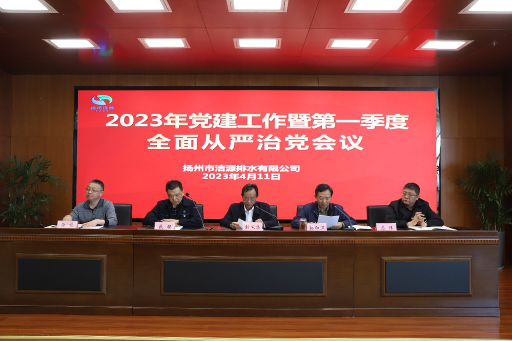 4月11日上午,洁源排水公司召开了2023年党建工作暨全面从严治党工作会议,公司领导班子成员、全体中层干部、助理和关键岗位人员参加了会议。