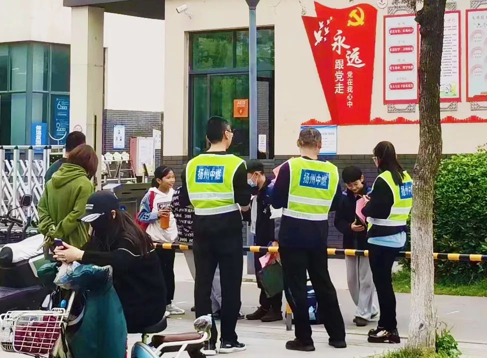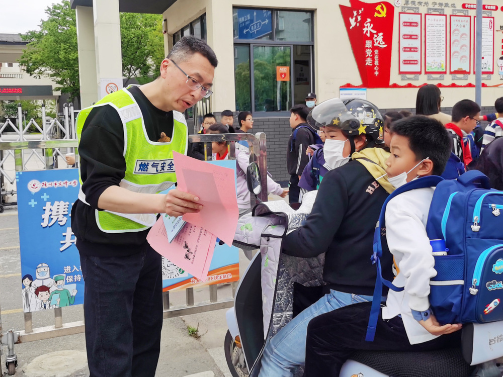 2023年4月28日,扬州中燃公司第五支部“蓝焰同心”志愿者在江阳路渡江岗和文峰小学散学点设立交通劝导岗,组织开展“交通安全在心中 幸福快乐伴我行”主题宣传活动,引导学生从小做起,从自身做起,做到文明礼让、安全出行、珍爱生命。