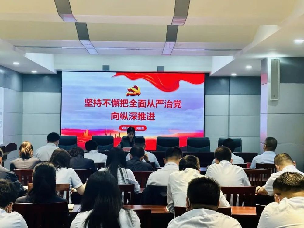 会议集中学习了中国共产党章程及政务处分法部分节选,集中观看了警示教育片《“赶考”路上》(第一集《有腐必反》)。公司党支部书记、总经理黄棚兰以《坚持不懈把全面从严治党向纵深推进》为题进行了党课宣讲,进一步提高全体党员在坚定理想信念方面的自觉性,让党员干部不敢腐、不能腐、不想腐。