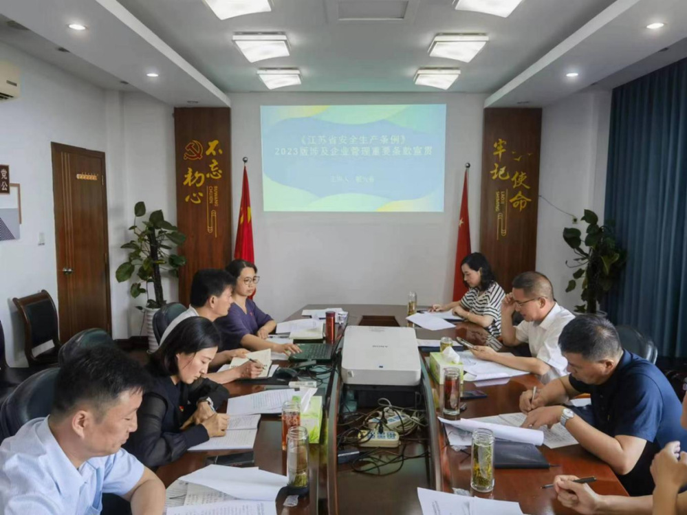 为扎实开展好2023年“安全生产月”活动,营造学法、用法、守法的良好氛围,进一步推动安全生产工作走深走实,6月9日下午,集团党委委员、名城公司总经理戴兴春专题宣讲新修订的《江苏省安全生产条例》,公司安全生产领导小组全体成员参加。