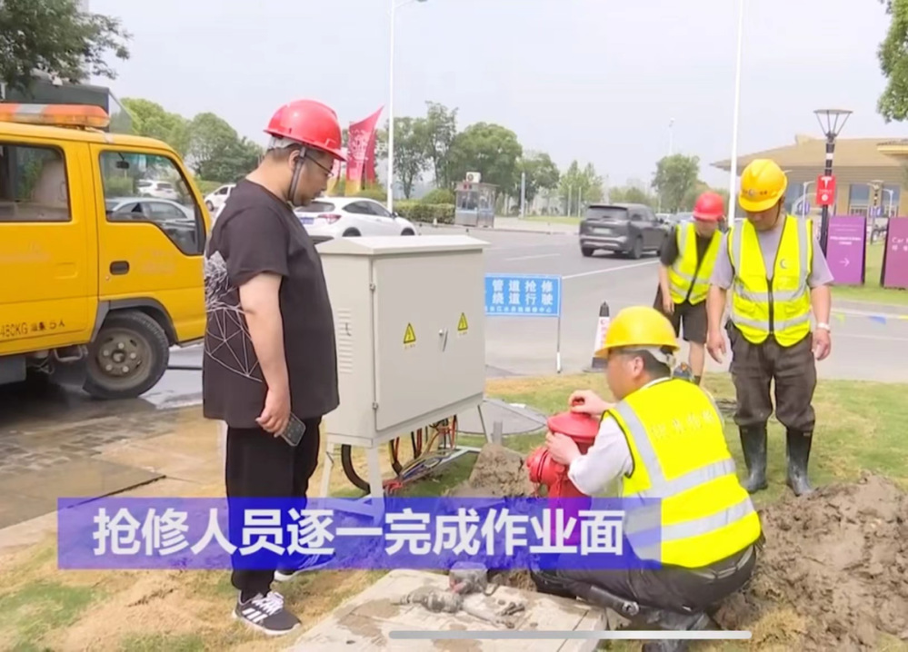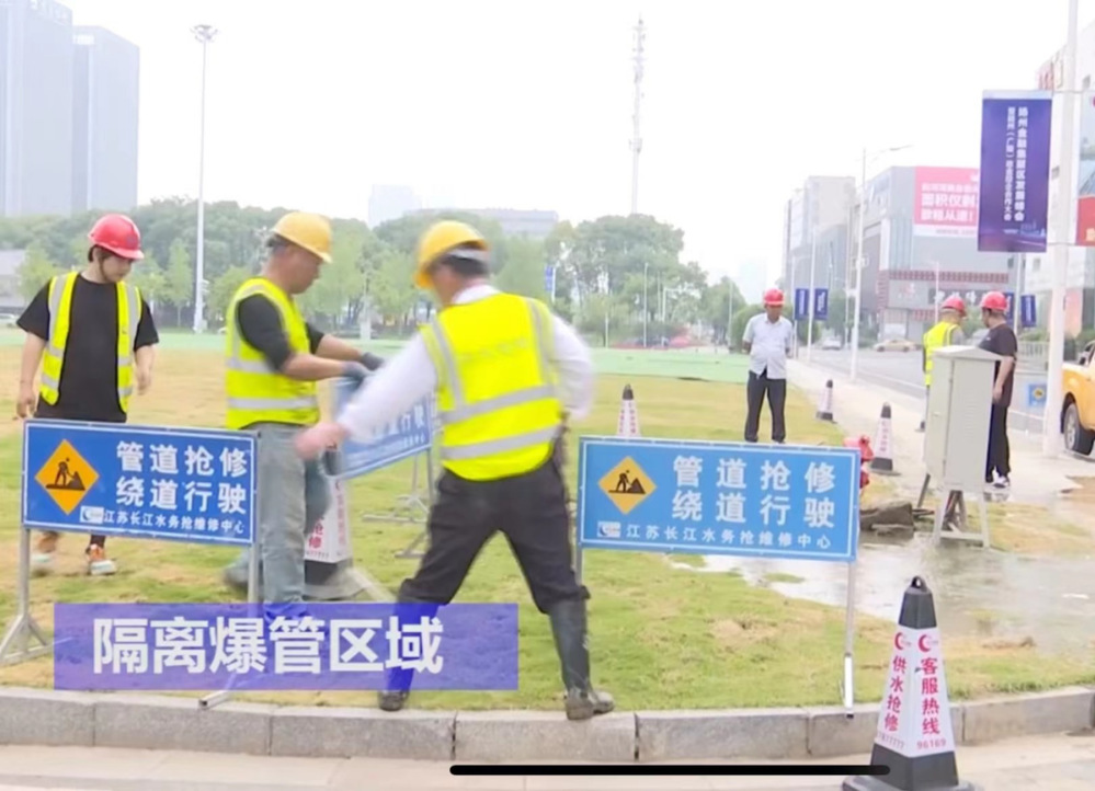 “供水抢修队,受强降雨影响,广陵大桥东一处供水管道破裂,你们要立即抢修!”长江水务抢维修中心接到指令后,派水网先锋突击队迅速赶到指定地点进行抢修。