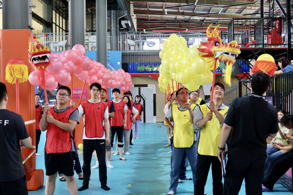 通过破冰活动,工作人员带领大家进行了活动前的热身,并向大家介绍龙舟文化的由来和活动注意事项。比赛正式开始,两支队伍参赛队员们团结一心,伴随着咚咚咚的节奏鼓点声奋棹争先,一时间鼓声、呐喊声、加油声此起彼伏,营造出团结、拼搏、奋进的难忘画面。