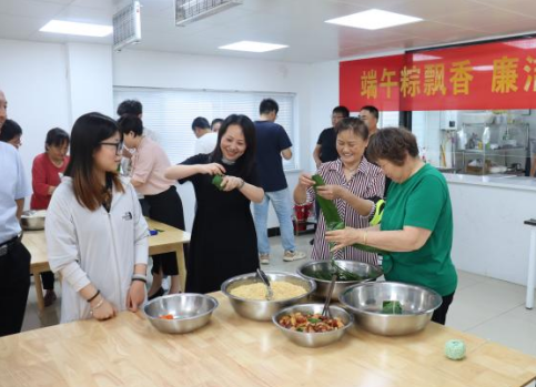 活动中,大家分工协作、密切配合,并结合个人特长,共同进行捋粽叶、填糯米、塞蜜枣咸肉、捆粽绳等包粽子活动,粽叶清香浓郁,糯米洁白饱满,粽绳扎实紧绷;在包粽子的同时,大家依次朗读香囊上的廉洁金句,在温馨“粽香”中感受浓浓“廉味”,接受了一次廉洁文化洗礼。活动现场欢乐祥和,粽香四溢,廉味十足。