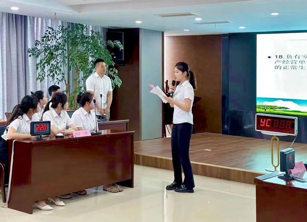 为进一步普及安全生产知识,提高全员安全生产意识,根据扬州中燃公司“安全生产月”活动计划,2023年6月16日下午,扬州中燃举办“安全知识竞赛”,来自公司各党支部和团支部组成的6个代表队参加比赛。公司分管安全负责人、各部门干部员工代表全程观摩。
