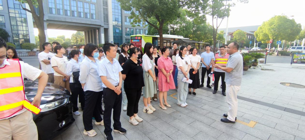 疏散人员在办公楼前集合,经各部门清点确定人员全部撤离后,演习结束。