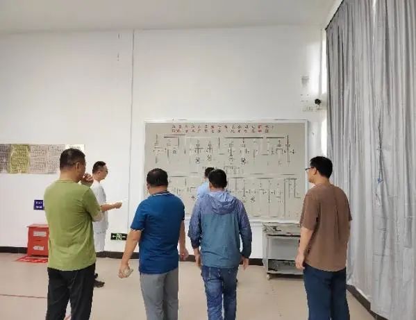 演练分为两个部分。一是模拟将水头线对1#主变供电调整为水北线对2#主变供电。变电所值班人员首先根据模拟要求,填写倒闸操作票。确定操作票无误后,一人监护,一人操作,在变电所模拟屏上进行倒闸操作。二是模拟在倒闸操作后已恢复厂用电的情况下,对送水泵房、加药间、取水泵房、提升泵房、深度处理车间等部位进行生产恢复。随后立即巡视各工艺段出水及设备运行情况,并关注在线仪表数值是否正常。
