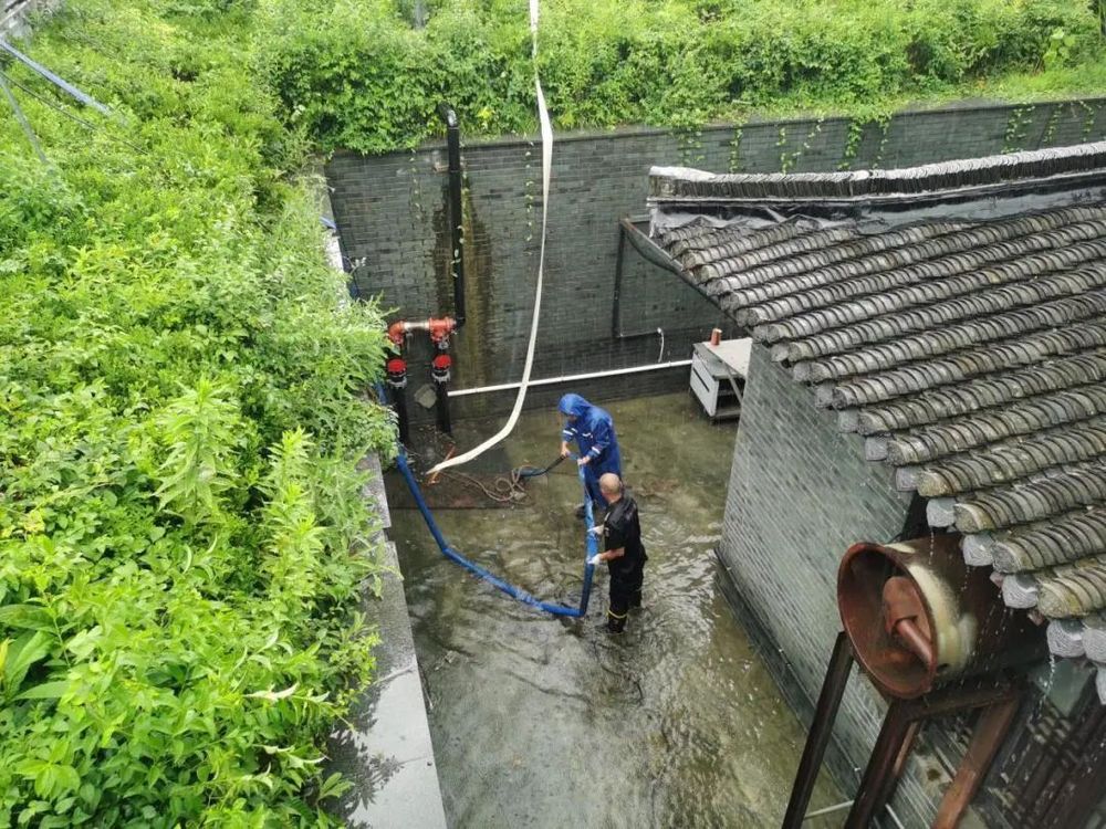 2023年7月6日14:15左右,扬州市突遭强降雨袭击,康山文化园立刻加大对街区的安全巡视。由于特殊的地理位置,街区3号楼下沉通道很快出现大面积积水,集水坑抽水泵已经不能满足排水需求,负一层商户随时面临室内淹水风险。