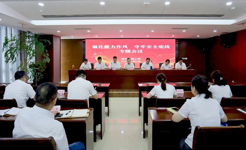 按照集团部署和要求,7月6日上午,扬州中燃公司召开“强化能力作风 守牢安全底线”专题会议。公司全体领导班子成员、中层干部参加会议。