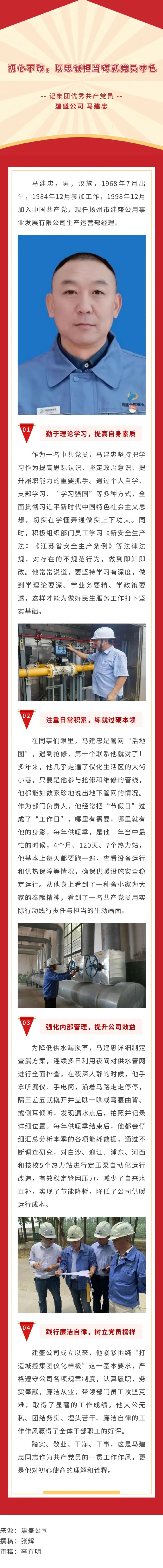 【庆“七一” 学先进】初心不改,以忠诚担当铸就党员本色--记集团优秀共产党员 建盛公司 马建忠