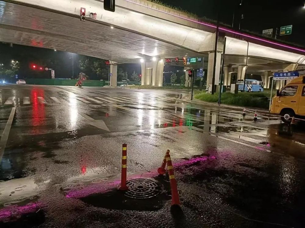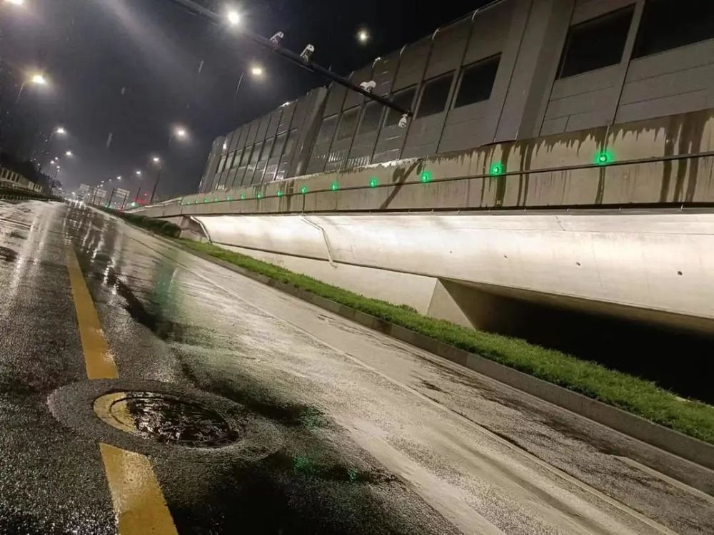 此次重点排查了隧道、高架及辅道沿线易积水路段,对窨井盖移位破损、路面渗水积水等问题进行了详细记录,及时做好现场维护,对隧道出口横截沟挡水墙等设施进行整改完善,对积水路段第一时间采取应急措施,保证排水正常、交通通畅。