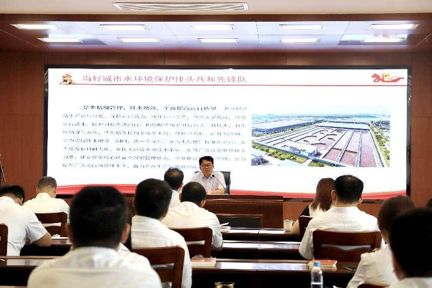 周平以《深入学习习近平生态文明思想,推动城市污水处理实现新跨越》为题,从“深刻认识新形势下加强生态文明建设重大意义”“准确把握习近平总书记重要讲话深刻内涵”“当好城市水环境保护排头兵和先锋队”三个方面,以党内先进理论为指导,结合城市污水当前发展现状,对公司党员干部提出具体要求,鼓励全体干部职工廉洁自律、奋发有为、再创佳绩。