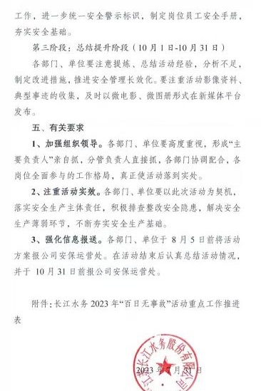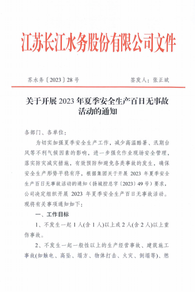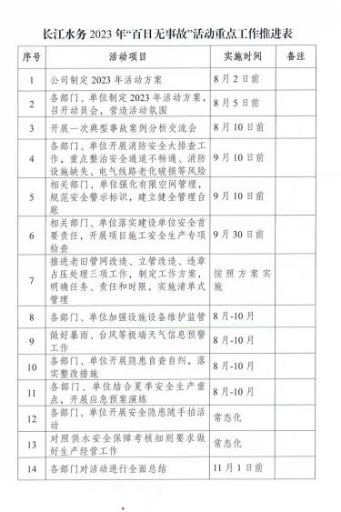 安全发展大如天,安全责任重如山。为进一步织密织牢“安全防线”,根据城控集团统一部署,长江水务公司从严从实抓好夏季安全生产工作,制定下发“夏季安全生产百日无事故活动”方案,多措并举筑牢安全供水防线,扎实推进活动走深走实。