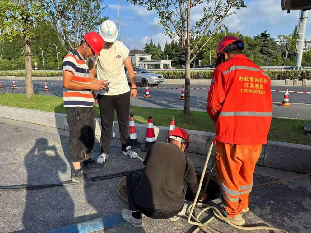 头顶烈日,脚踏酷暑。在持续的高温天气下,市政管网抢维修项目组依然坚守岗位,挥汗如雨抓进度、保工期。在江阳中路排水管道抢修项目施工现场,管网公司工程处的“00后”项目负责人郑王祉带着施工人员正冒着高温紧张忙碌着。