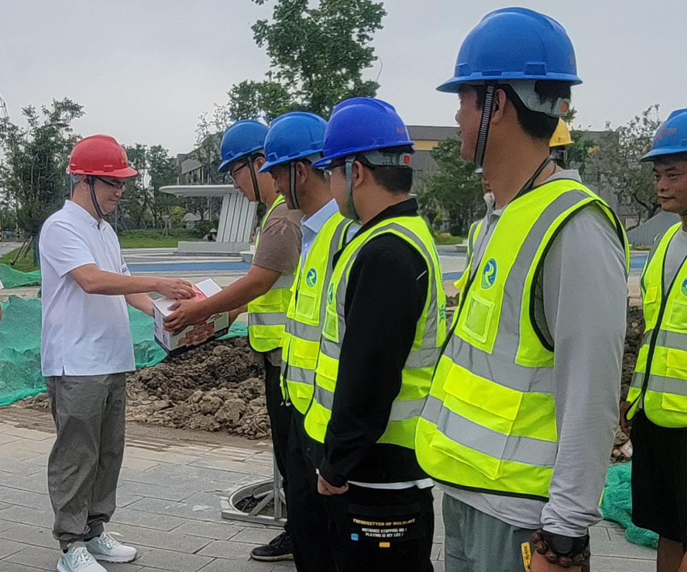 慰问组一行深入施工一线,在现场详细了解了项目工程进展、安全文明施工、防暑降温措施等情况,仔细询问了项目推进中的堵点卡点,现场办公,推进解决,并为一线建设者送上了防暑降温慰问品。