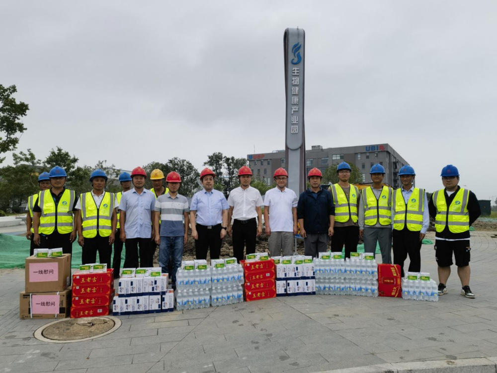 8月9日上午,扬州市经开区建设局、棒杰新能源科技有限公司负责人一行看望慰问了朴席片区“棒杰项目”专项给水管道工程的建设者,感谢他们为经开区招商引资和民生保障付出的辛劳,向奋战在项目一线的长江水务建设者致以崇高敬意和诚挚问候。