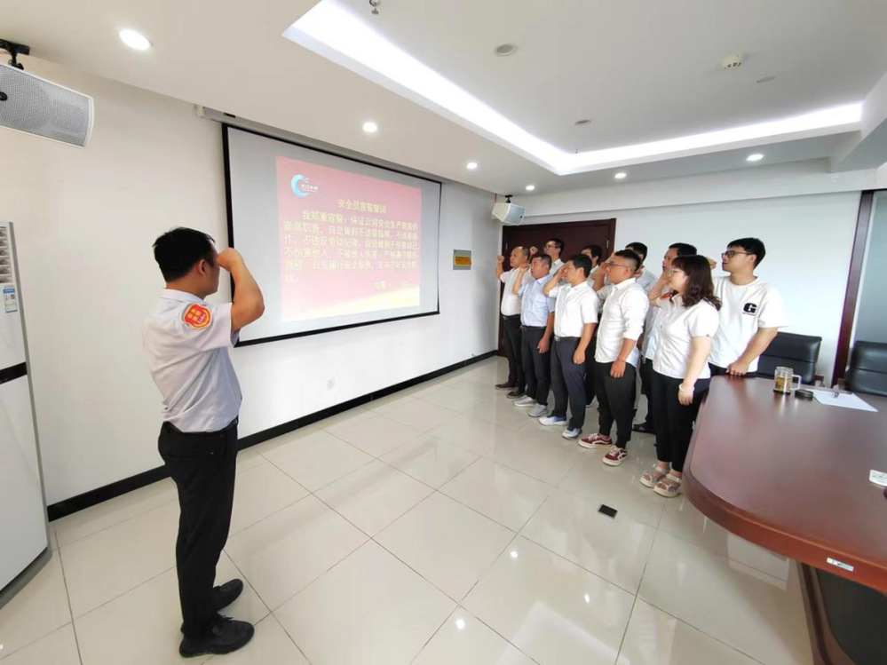 会上,与会人员集中观看了事故警示教育片,通过安全事故分析,加强全员警示教育,进一步强化广大干部职工的安全责任意识;长江水务公司党委委员、副总经理、安全总监谢剑根根据夏季安全生产百日无事故活动安排和夏季安全工作特点,对当前安全工作进行部署;公司专(兼)职安全员们佩戴安全监督员臂章进行集体宣誓,在宣誓仪式现场,安全员们个个穿戴整齐、精神饱满,进一步增强了安全员抓安全生产的使命感和责任感。