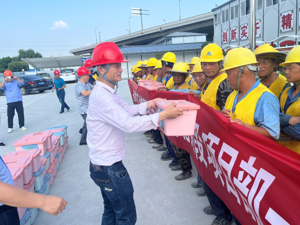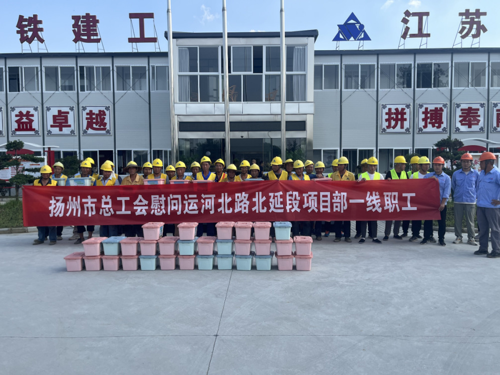 活动现场,市总工会范华一行为高温下坚守岗位的工人师傅道辛苦、说感谢、送关怀,并递上高温清凉慰问品。范华嘱托运河路北延项目部一定要抓好施工一线人员的防暑降温和健康安全工作,特别是当前面临着战高温、防汛防台等形势。同时,他激励项目部全体人员要继续保持“精益卓越、拼搏奉献”的大爱精神,为扬州的建设和人民美好生活贡献力量。
