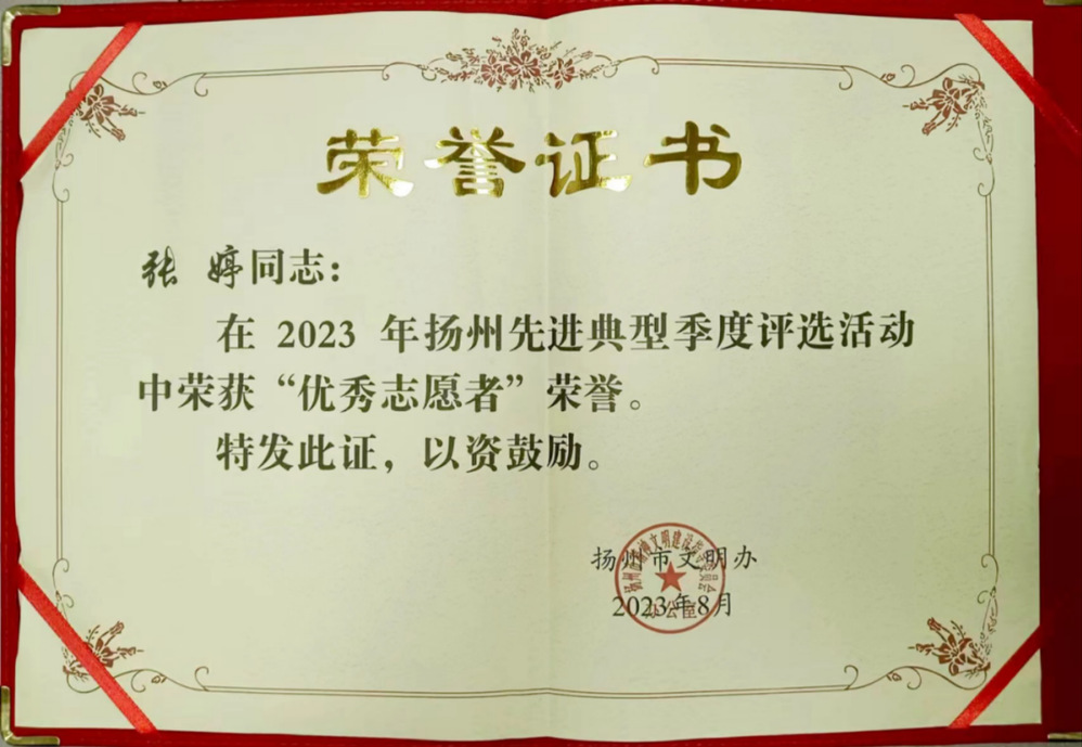近日,由扬州市文明办传来喜讯,洁源环境公司“源动力”志愿者服务队环保讲师张婷荣获扬州市“优秀志愿者”称号。