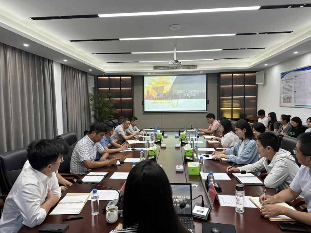 王月律师围绕实际施工人的概念及特征、实际施工人主张工程款的路径分析、基于总包单位角度的实际施工人民商事法律风控核心要点三个方面进行深度讲解,并结合公司实际以案释法,梳理法律风险点。在培训互动中,参会人员根据所学知识内容结合王律师提出的问题进行讨论。