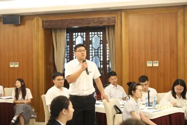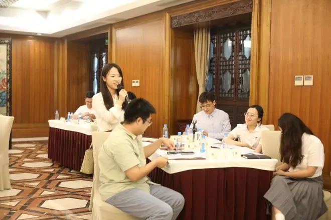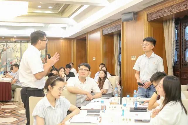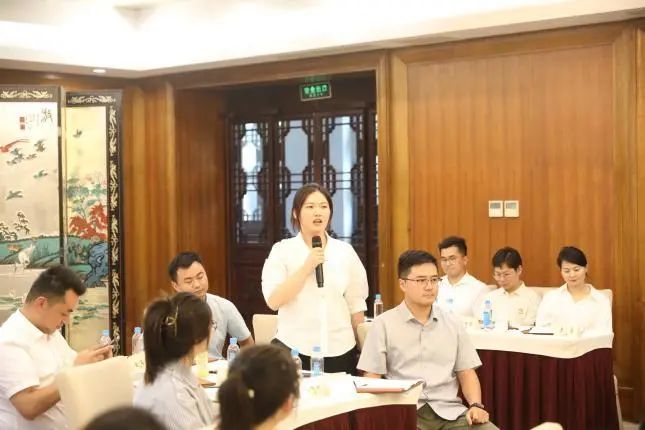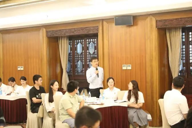 在之后的我点你答和分组讨论环节,大家围绕文旅融合发展、街区运营、绿色低碳新业态、大运河十里外滩和小秦淮河项目建设等话题展开讨论,并就推动集团及自己所在企业的高质量发展献出妙计良策,现场氛围活跃,与会青年代表踊跃发言,纷纷提出自己的看法。集团领导针对青年代表的精彩发言,现场与青年代表们深入交流互动。
