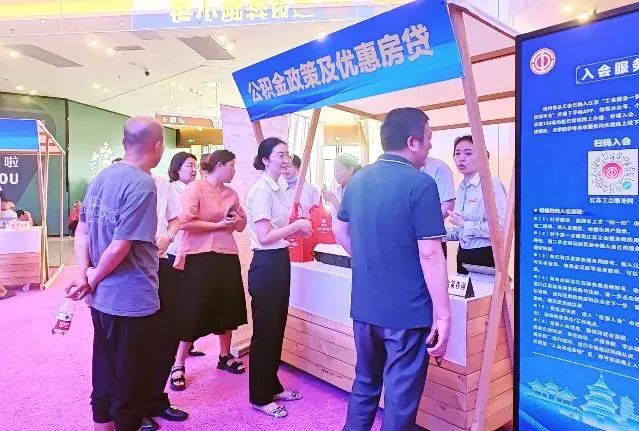 嘉都汇中庭活动现场,还安排了法律服务、就业创业服务、互助医疗、爱心义剪、公积金政策、优惠房贷等8个服务项目,充分解决了新业态新就业劳动者们的各项生活需求。