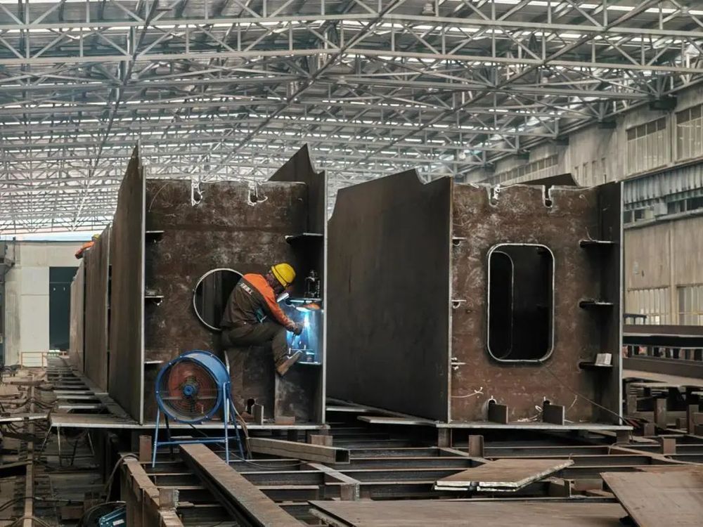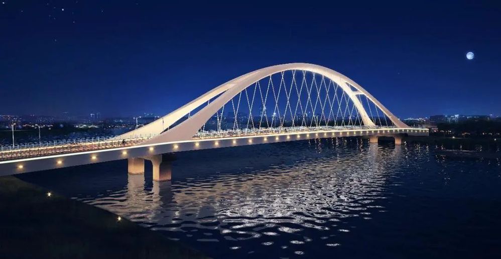 桥梁主拱内倾呈提篮式外观,线型控制将成为本桥施工把控重点。目前,主墩下部结构已完成施工,主桥钢结构4114吨材料已全部进场,主桥钢支撑施工、构件拼装等施工工序稳速推进中。