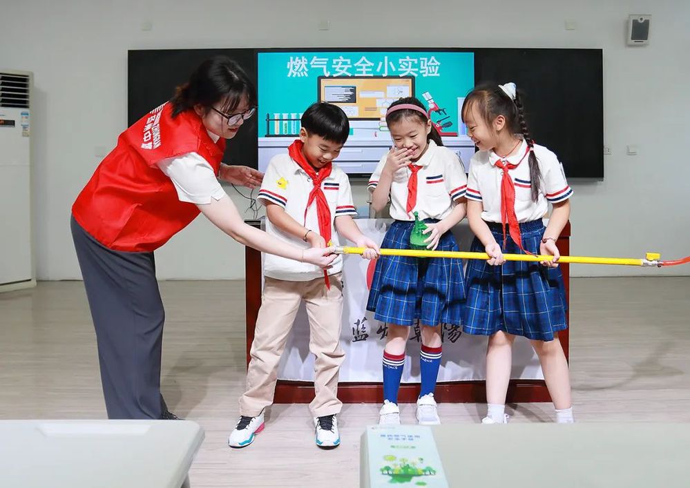 为切实增强安全宣讲的吸引力、实效性,本次活动创新采用“沉浸式”现场参与同“体验式”实景宣教相结合的方式,让学生们身临其境、竞相参与。在“燃气安全小实验”环节中,在志愿者的示范讲解下,同学们怀着新奇好奇心,纷纷上台动手体验,学会了用洗洁精泡沫检查燃气设备连接处是否漏气,生动还原了日常生活中遇到的燃气隐患的解决方法,让同学们“沉浸式”感受到安全使用燃气的重要性。