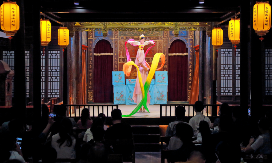 虽然小剧场座位少、场地小,但演员和观众互动性则进一步增强,也更具有代入感和震撼力。近半年,小剧场在扬州古城提速发展,东关街区陆续推出冬荣园、长乐客栈芍药园子三处小剧场及新开放的潘玉良纪念馆小剧场。