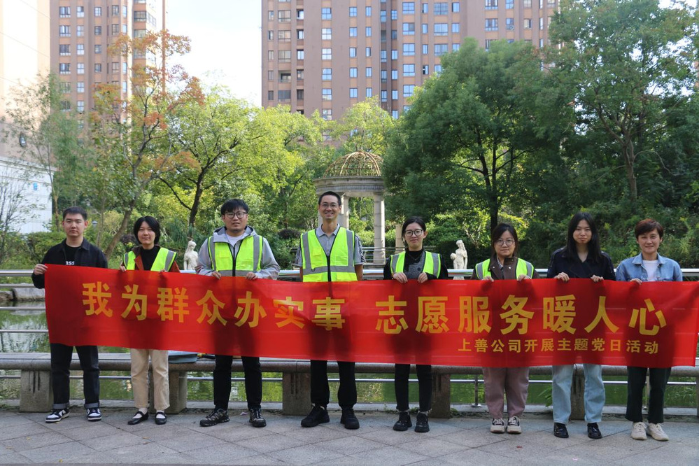 为充分发挥上善党支部的战斗堡垒作用和党员先锋模范作用,10月8日下午,上善公司组织志愿者来到京杭融园小区开展“我为群众办实事 志愿服务暖人心”主题党日活动,为居民营造美丽、整洁、舒适的小区环境。
