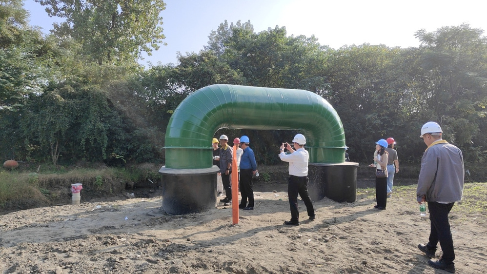 三期四标管道设计DN600主管从三期三标段接出,沿廖家沟河堤西外侧向北敷设至广陵大桥,与已建二期管线预留口连接,全长约2206米。其中,过328国道顶管部分为三期四标施工关键节点,长约199米,两座沉井分别位于328国道南、北两侧,施工工艺复杂,精度控制要求高。公司项目组坚持问题导向,聚焦项目推进中存在的难点,强化要素保障,积极协调解决,以优质的施工工艺、严格的质量把控、科学的施工方案,确保了顶管施工的安全可控、精准对位。