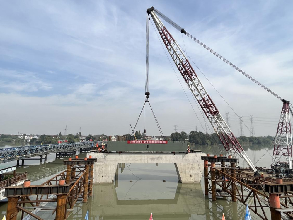 10月25日上午,壁虎河大桥复建工程主桥钢结构首片顺利吊装,标志着大桥正式进入主桥钢箱梁架设阶段。