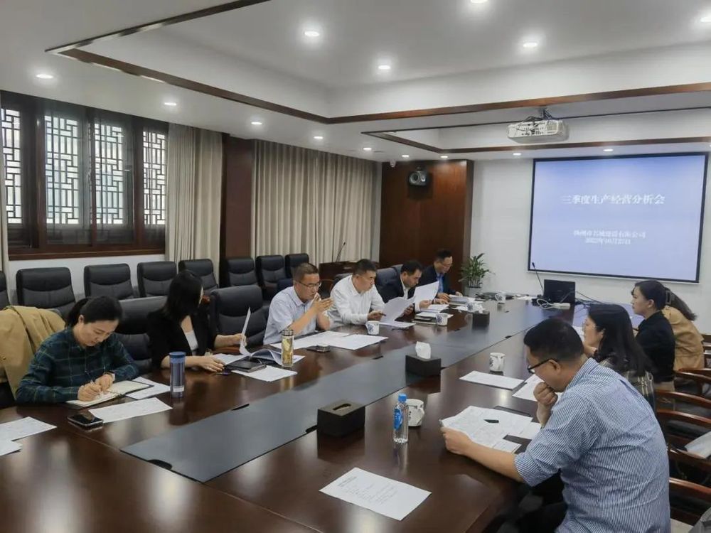 10月27日下午,扬州市名城建设有限公司召开三季度生产经营分析会,总结今年前三季度工作成果,检视经营管理中存在的问题,对第四季度重点工作进行了安排和部署。会议由城控集团党委委员、名城公司党总支书记、总经理戴兴春主持,名城公司领导班子、中层干部参加会议。