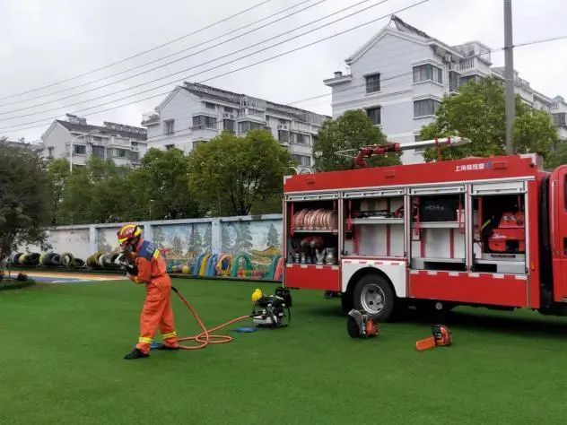 此次演练资产公司还邀请了区消防中队,将消防车开进校园,与孩子们零距离接触。消防员打开车上的一扇扇小门,将消防车里的各种消防器材都呈现在小朋友的面前,同时对消防车里的装卸水枪、水带、空气呼吸器、破拆工具、灭火器、逃生面罩等消防装备依次进行了详细地讲解和示范,孩子们认真听讲,通过用眼看、用手摸等亲身体验,更加真切和全面地认识了各种消防器材,掌握了更多的消防安全知识,进一步加深了孩子们的防火安全意识。