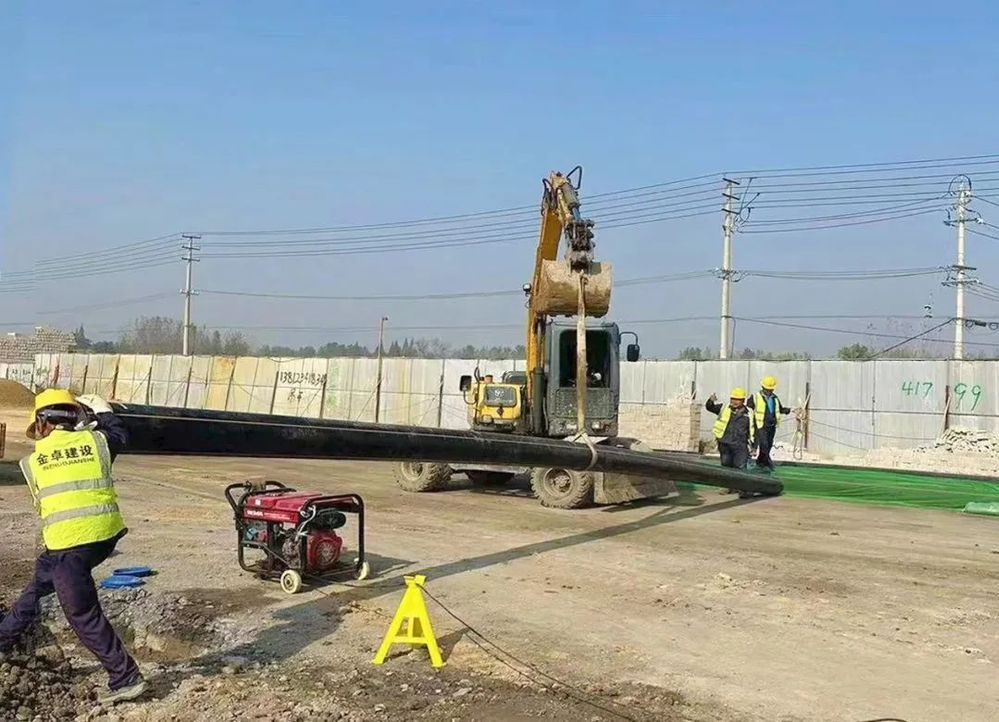 在扬州中燃公司特许经营范围内的乡镇中,仅剩余朴席镇是通过“CNG瓶组站”方式供应天然气。为尽快实施朴席镇画舫小区瓶组站置换管道天然气工作,扬州中燃公司计划随扬子津路西延建设同步敷设燃气管道,因扬子津路西延先实施南半幅施工,而燃气管道规划管位在道路北侧,先行进场势必影响道路后续的施工。扬州中燃公司多次与市政建设处对接,联合设计单位现场踏勘,确定各管线间水平及高程之间的关系,调整燃气管位及施工方案,于10月20日进场施工,11月22日完成该段燃气管道的竣工验收投用,同步将画舫小区瓶组站置换成管道天然气。