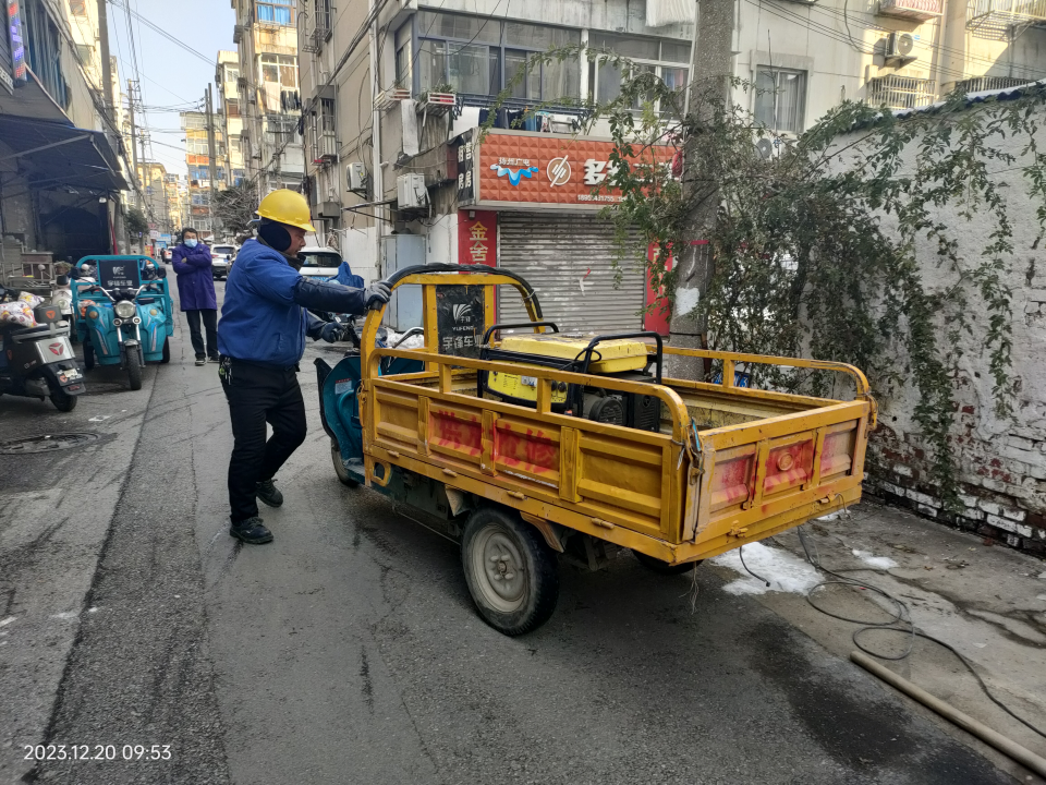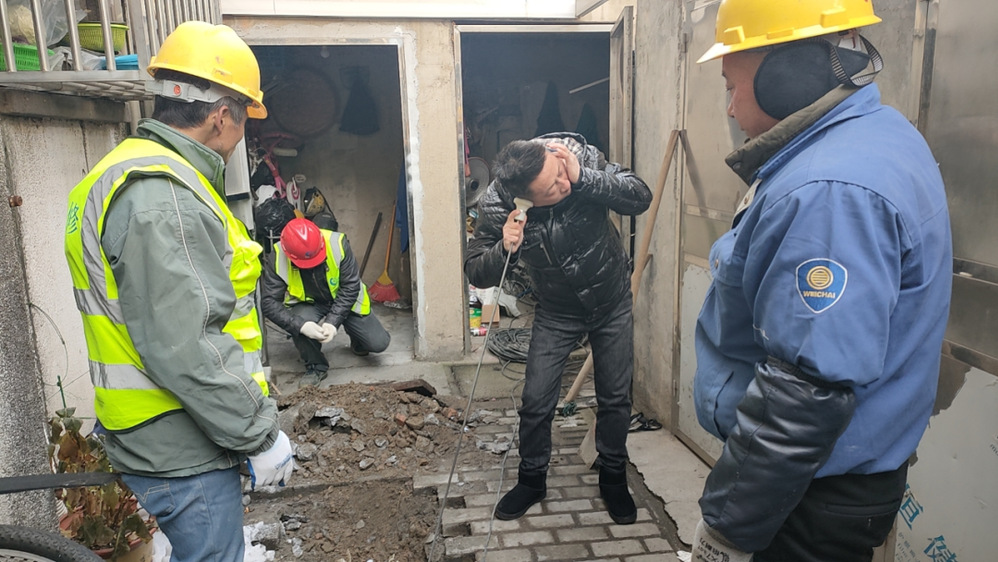接到报修电话后,长江水务抢维修中心抢修人员立即赶到现场,细致查勘确定是表前PE63管道冻裂漏水造成水压变小。严寒天气下,地面冻得很硬,为方便抢修施工,抢维修中心又调来挖掘机开挖基坑,抢修人员冒着零度以下的严寒关闭闸门、停水抢修。在修复冻裂的管道后,供水抢修负责人到王大姐家打开水龙头,检查水压是否正常,在获得王大姐的满意答复后才离开现场。在抢修尾声,供水抢修人员又接到马太巷居民报修处理的工单,抢修人员稍作休息又赶赴下一站。