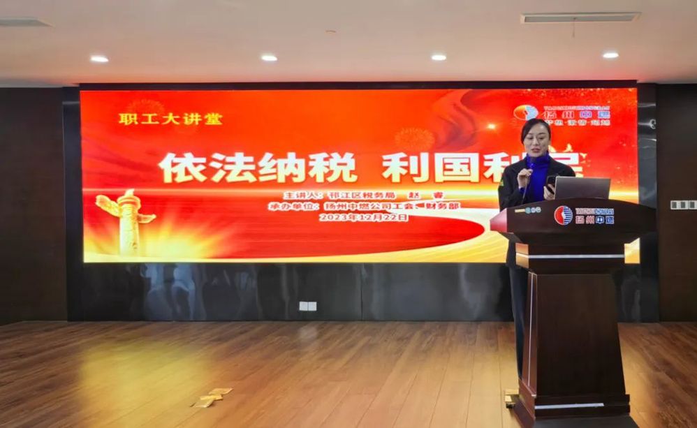 为进一步做好个人所得税相关政策宣传普及工作,近日,扬州中燃公司工会举办第四期职工大讲堂。扬州中燃公司干部、职工代表等50余人参加活动。