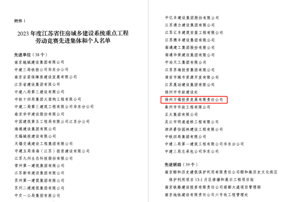 近日,万福公司被授予 “2023年度省住建系统重点工程劳动竞赛先进单位”荣誉称号。