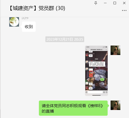 《榜样8》专题节目直播当天及时在公司党员群内转发观看时间和观看方式