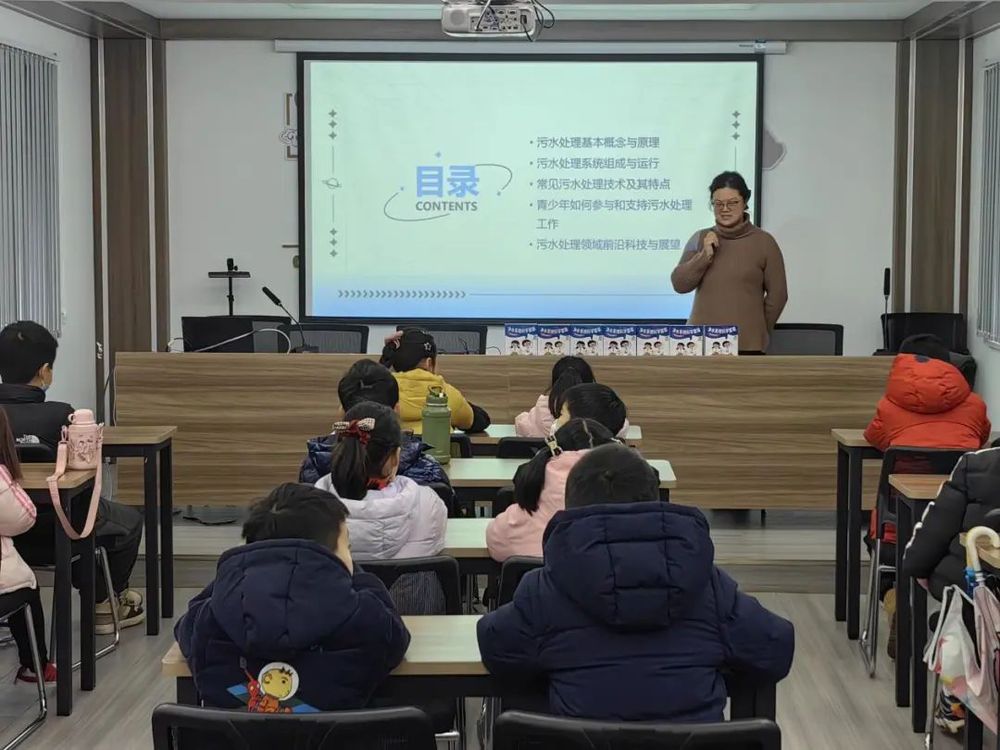 在多功能厅,环保讲师以污水处理及保护为主题,通过一幅幅生动的图片和通俗易懂的语言,为40余名小朋友上了一堂以污水处理与再生水利用为主题的科普教育课,并向小朋友们讲述了节水用水、水环境保护的重要意义。在交流互动环节,小朋友们分享了各自环保小故事和节约用水小妙招,环保讲师也一一回答了小朋友们提出的问题。