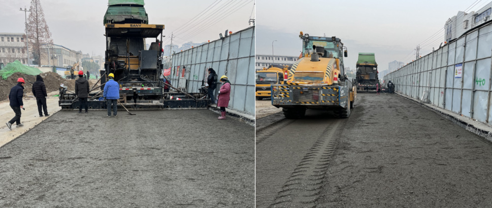 为了保证节前完成江都路三标主干道通车目标任务,上善公司加强组织协调,增派公司青年职工去施工一线监督,通过合理调配资源,严控进场材料质量,加强施工技术交底等方法,严把施工安全质量关,确保西侧快车道水稳摊铺安全、质量、进度受控,按照既定计划顺利完成路面摊铺。