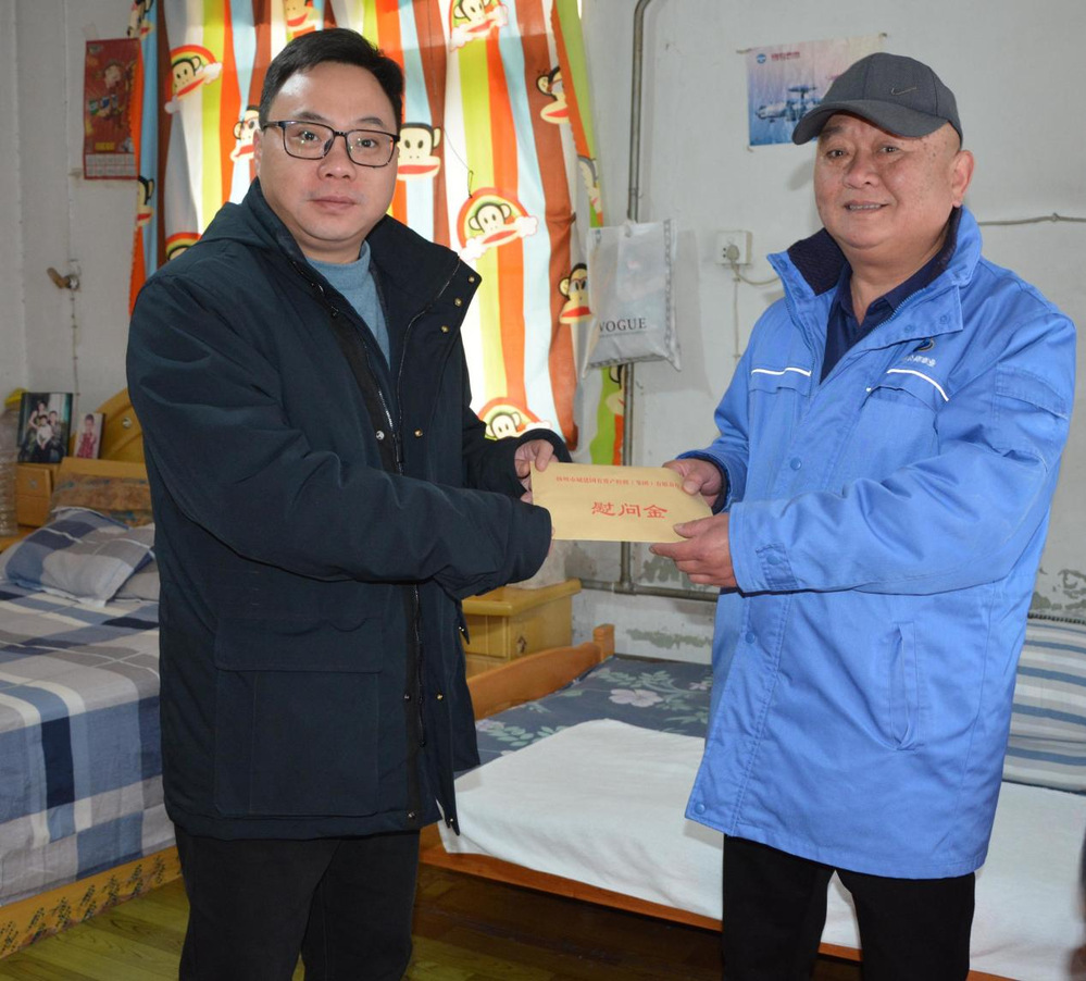 2月6日上午,集团党委副书记、总经理潘涵走访慰问了两名长江水务公司职工,给他们送上节日的问候,同时鼓励他们调整好心态,用积极向上的态度对待生活,勇敢面对暂时的困难,争取早日走出困境。