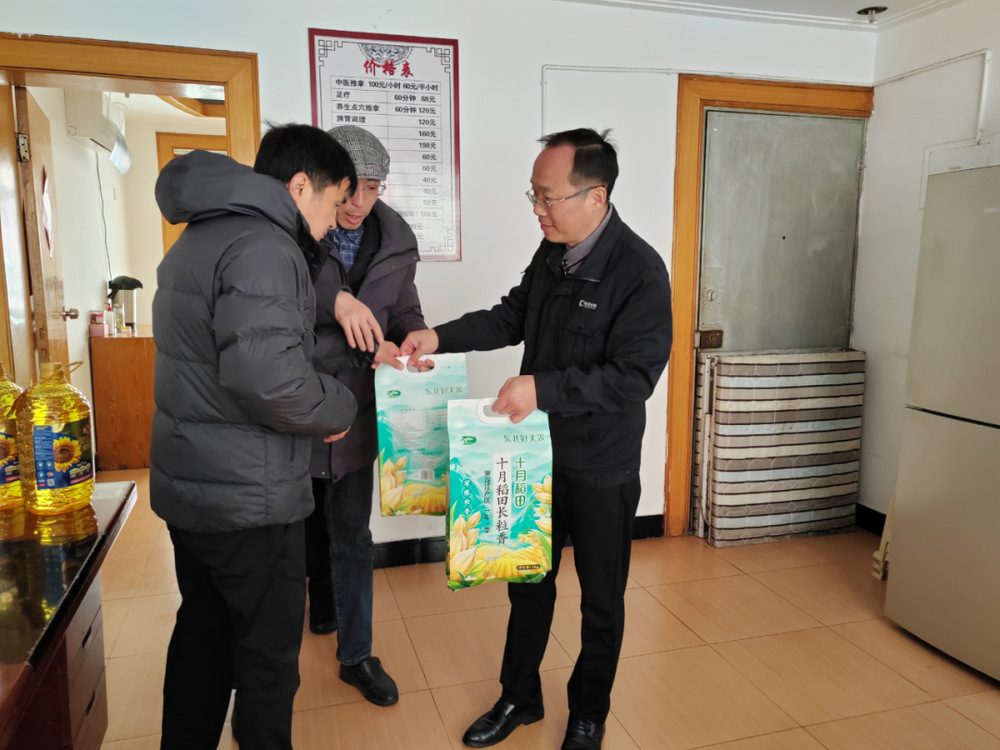 长江水务公司第五党支部走进兰庄社区凯莱花园,为盲人用户送去了米、油等生活用品,同时送上节日的祝福和问候。随行的小李服务队为该用户检查了用水设施,对水表、水管进行防冻保温,保证低温天气下正常用水。