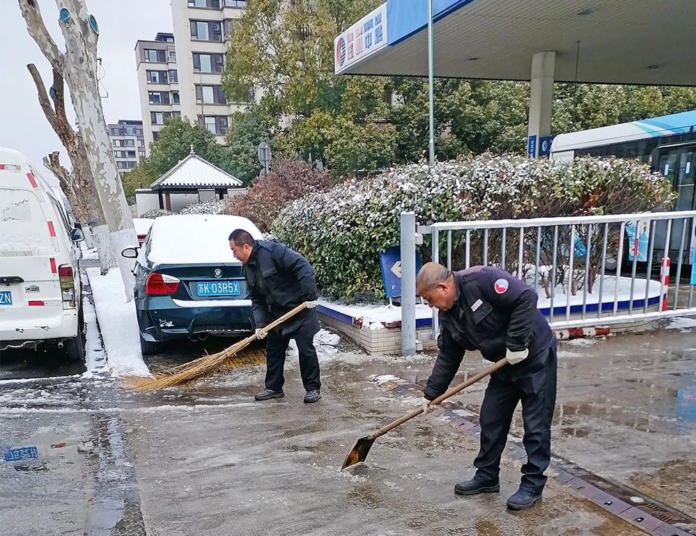 2月22日一场大雪,扬州成了冰雪的世界。为了确保车用气加气各场站安全运营,扬州中燃公司迅速组织人员对各场站进行除雪防冻安全保障措施。
