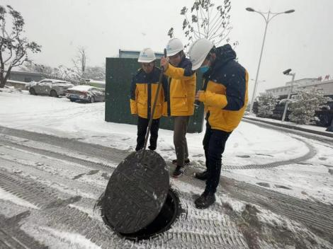 面对来势汹汹的强降雪天气,管网公司迅速响应、积极应对,全面加强对市区易满溢点、积水点值班巡查,及时设置易满溢点安全围挡,提前预备应急队伍和融雪剂、草袋等物资,做好随时应对突发情况的准备。发挥厂网站联动优势,根据实际情况合理调控、调度,确保管网公司管辖范围内,所有设施稳定运行。对管辖区域的台阶、坡道等易滑倒部位设置警示提醒标识,放置防滑垫和撒融雪盐,保障群众出行安全。