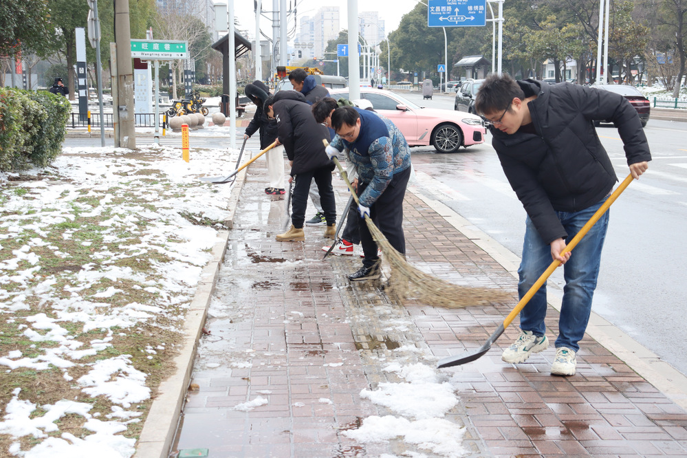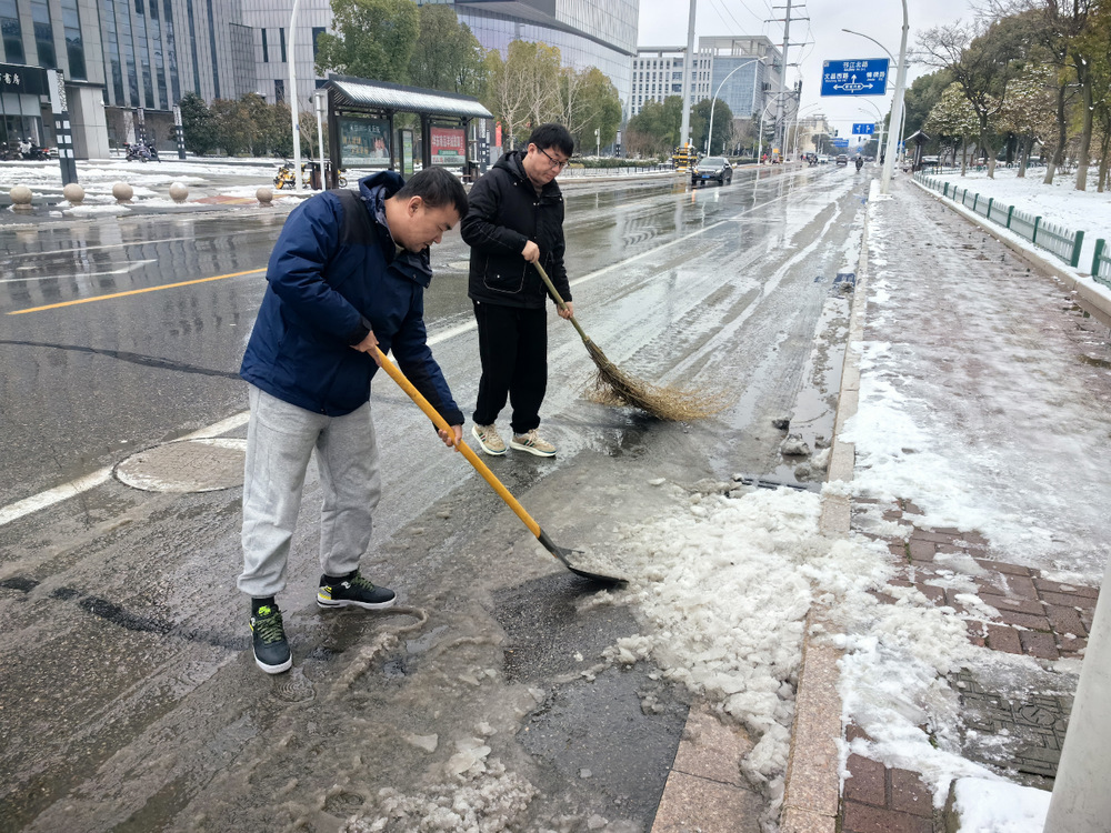 近日,一场暴雪突袭扬州,带来诗情画意的同时,也为污水处理生产工作增添不少挑战。为有效应对雪情,消除安全隐患,保障安全生产,2月23日上午,洁源环境公司组织开展了扫雪除冰行动。