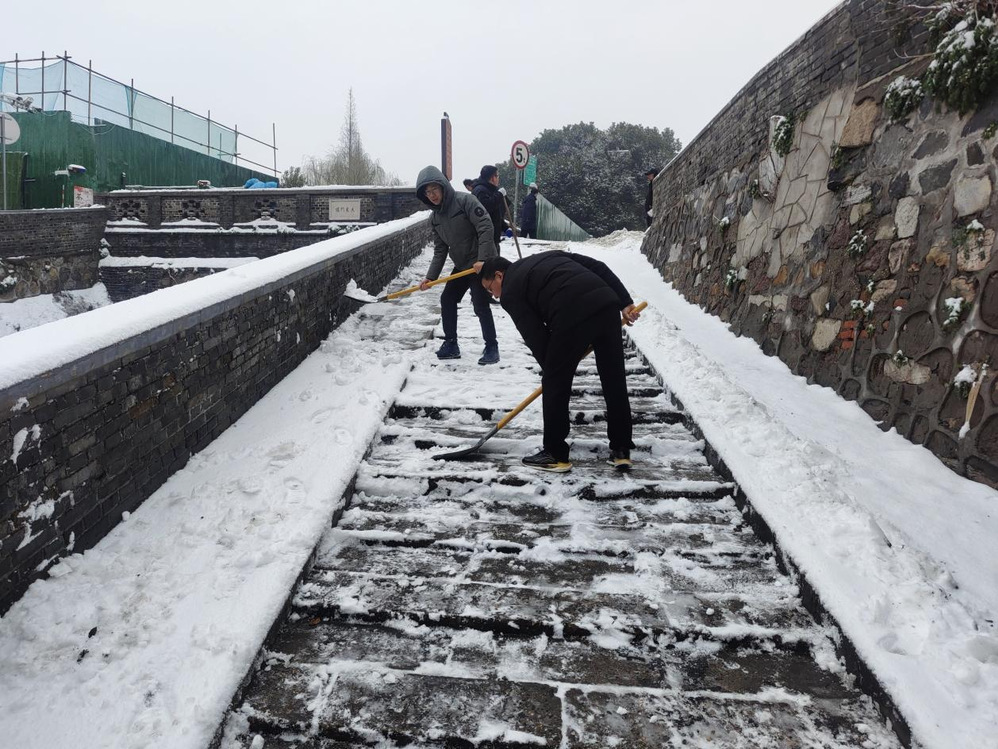 古城保护,保留的是历史文脉,守护的是百姓生活。古保公司将密切关注天气变化,持续做好雨雪冰冻天气防范应对工作,做实做细各项除雪防冻措施,保障好小秦淮河周边居民出行安全,为项目安全施工保驾护航。