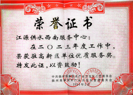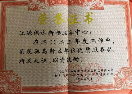 过去一年,长江水务江源公司在优化营商环境、提升对外服务质量方面取得了显著工作成效,杭集、方巷、槐泗、杨庙、汊河、甘泉等6家网点于近日分别荣获优质服务单位荣誉称号。