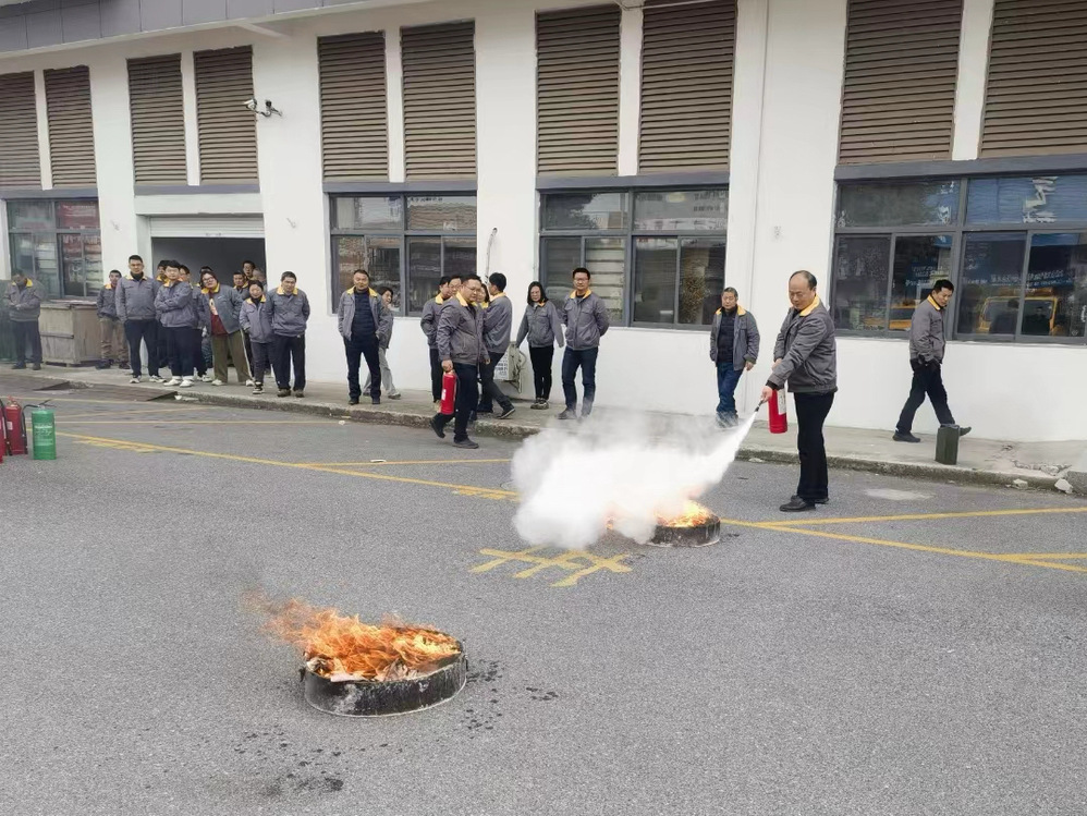 演练前,安全分管领导结合近期火灾事故案例教训向参演人员进行了消防安全专题宣讲。在演练现场,安全分管领导详细地介绍了各类灭火器的使用要点及灭火过程中应当留意的注意事项,随着铁皮油桶内易燃物被点燃后,演练正式开始。各参演人员按照分工迅速就位,分别利用干粉灭火器和水基型灭火器进行灭火演习,逐一将明火扑灭,全体员工动作训练有素,井然有序。