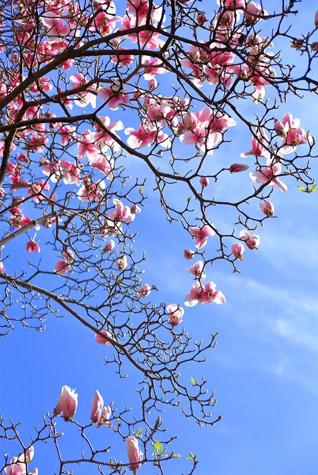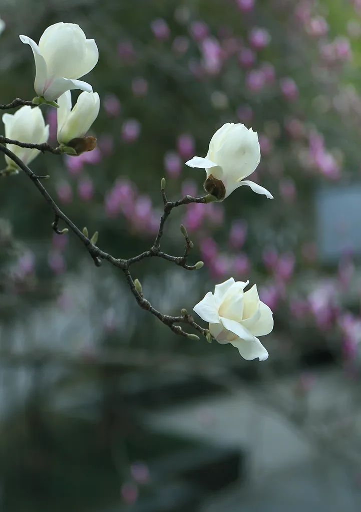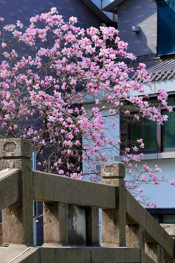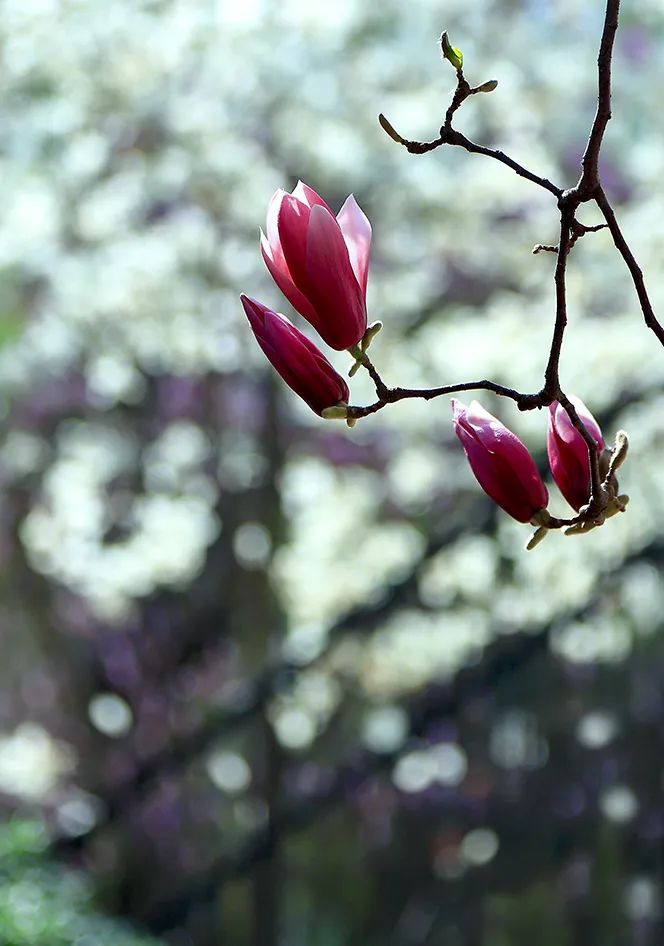 春风轻拂,小秦淮河两岸一株株玉兰花树傲然挺立,似白鸽飞舞、如彩蝶翩翩,让人感受到了温暖和陪伴。白色的花朵玉洁冰清、轻盈纯净,紫色的花朵灿若云霞、风姿绰约,它们相约悄然绽放,以最温婉的方式宣告春暖花开,以最热情的方式喜迎宾朋。